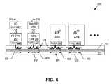 In one embodiment,optical couplers220 are evanescent couplers. The evanescent couplers can be configured to absorb an appropriate ratio of optical energy propagating withinoptical bus210 based on a number of physical interaction factors. Such physical interaction factors include separation distance between the evanescent coupler andoptical bus210, interaction length (i.e., the longitudinal length of the evanescent coupler running along sideoptical bus220 at the separation distance), and a ratio between the index of refraction ofoptical couplers220 tooptical bus210. In one embodiment, these physical factors are appropriately set to ensure eachoptical coupler220 absorbs an approximately equal portion of optical energy propagating withinoptical bus210. For example, inFIG. 2 (assuming additional processor205 are not present) eachoptical coupler220 of processors205 may be configured to split off one third ofoptical signals260 propagating to the right whileoptical couplers220 of I/O controller240 andmemory controller230 may be configured to split off one half ofoptical signals250 propagating to the left.