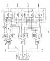 FIG. 4 is a diagrammatic view of a selector network that shares a beamformer to allocate beams between the two apertures included in the phased array antenna system shown inFIG. 1.