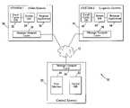 Thecentral system20 includes acentral database22, auser interface24, and amessage transport layer26. Thecentral database22 may contain one or more data objects that are used by the various systems in the network. In theFIG. 1 example, the data objects relate to products or inventory items that are integral to the business documents that may be generated by the sales andlogistics systems30 and40. The data objects may include information relating to price, quantity, physical characteristics of the item, delivery time, etc. In other examples, the data objects may relate to other information that may be relevant to other types of applications. Each data object in thecentral system20 includes a version identifier. The version identifier may be, for example, a version number that is incremented after each change or modification. Alternatively, the version identifier may be a timestamp that reflects the actual time of the modification. Yet in other implementations, a different non-cyclical identifier may be used to track the changes made to the central data objects.
