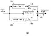 wherein α and (1−α) are the weighting coefficients generated by thecontrol unit130 for thesharp filter110 and thesmooth filter120, respectively (0≦═≦1).