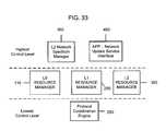 FIG. 32 is a flow diagram showing interaction between resource managers in the various software levels of the spectrum management system.