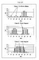 FIG. 8 illustrates exemplary signal pulses of signals that may be present in the frequency band. There is IEEE 802.11b signal activity that consists of pulses1-6.Pulses1,3 and5 are the forward channel 802.11b transmissions andpulses2,4 and6 are acknowledgement signals. There is also a frequency hopping signal, such as a Bluetooth™ SCO signal comprising pulses7-14. The timing, strength and duration of the signals are not shown at precise scale. Pulse event data is generated for signal pulses1-6, for example, by a pulse detector configured appropriately. Pulse event information is generated for signal pulses7-14 by another pulse detector configured appropriately. The signal pulse data is accumulated over time for the two types of signals. The signal pulse data may be accumulated into various histograms. In addition, spectrum analysis information may be derived from the signal activity in the frequency band, and this information can be used to generate, for example, the number of different transmissions that appear to be present in the frequency band at a given time period by counting the number of power values (above a threshold) at different frequencies in the band during the same time interval.
