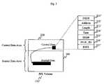 FIG. 3 illustrates JNL volume or JVOL112′ according to another embodiment of the present invention. As explained above, the JVOL is configured to store a journal or journal information used in performing a remote copy operation. The journal includes a pair of journal data and its control data. The control data is stored in acontrol data area230 of theJVOL112′, and the journal data is stored in ajournal data area240 of theJVOL112′. In one embodiment, the JVOL is a first-in-first-out (FIFO) storage, so that the control data and journal data are read out according to its order of receipt.