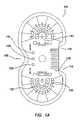 Reference is now made to the figures wherein like parts are referred to by like numerals throughout.FIG. 1A illustrates one version of a conventional full or Big Baccarat layout generally referred to byreference numeral100. Thelayout100, supported by a table, defines astick position105 and twobase positions110 and accommodates adrop box115, discardtrays120 and atips box125. The table further accommodates up to fourteen players (routinely player number thirteen is removed for reasons of superstition). Each player position has a correspondingbanker wager area130,player wager area135 and tiewager area140.Commission boxes145 are used to track player commissions owed to the house. Baccarat is also played at tables accommodating seven and nine players. In such embodiments, the layouts are similar to layout100 (i.e., same wagers) but are supported by a different table configuration as shown inFIGS. 1B and 1C.