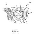 FIG. 14 is a fragmentary, cross-sectional view taken along line14-14 ofFIG. 13 and depicts ablative energy being transferred to the tissue through the conductive hydrogel.