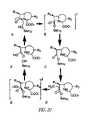 FIG. 20 illustrates a reaction scheme for a serine beta-lactamase. The reaction begins with the formation of a precovalent encounter complex (FIG. 19A), and moves through a high-energy acylation tetrahedral intermediate (FIG. 19B) to form a transiently stable acyl-enzyme intermediate, forming an ester through the catalytic residue Ser70 (FIG. 19C). Subsequently, the acyl-enzyme is attacked by hydrolytic water (FIG. 19D) to form a high-energy deacylation intermediate (FIG. 19E) (Minasov et al., 2002), which collapses to form the hydrolyzed product (FIG. 19F). The product is then expelled, regenerating free enzyme.
