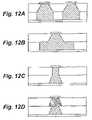 FIGS. 12A-D are cross-sectional diagrams showing reservoirs having complex reservoir shapes, which can be made, for example, by utilizing wafer or other substrate bonding methods or by adapting silicon-on-insulator (SOI) fabrication methods.