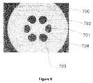 FIG. 8 illustrates a cross-section of a polarization maintaining (PM)fiber700 incorporating twostress elements704, in addition to 4holes702. Thecore701 comprises a dopedportion703 formed using doped rods such as those fabricated using processes described with reference toFIGS. 4A and 5A.