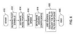 Flow continues to block618 where, using the estimate of the noise power and the estimate of the WCD's velocity, a set of filter coefficients is determined. Inblock620 the set of desired coefficients are used to adjust the filter response. As discussed, in one embodiment, the coefficients are predetermined and stored, for example, in a look up table. In another embodiment, the coefficients are determined by the WCD in response to the estimates of the noise power and the mobile WCDs velocity. In yet another embodiment, the estimate of the noise power and the estimate of the WCD are transferred from the WCD to another location in the wireless network infrastructure where the filter coefficients are determined and are transferred back to the WCD. In still another embodiment, the estimate of noise power is transferred from the WCD to another location in the wireless network and the network receives, or calculates, the velocity of the WCD. For example, the velocity of the WCD can be determined from measurements made upon signal received by the network that were transmitted from the WCD. In addition, the filter coefficients can be selected based on the estimate of the velocity of the WCD without reference to a noise power estimate.