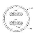 There is illustrated inFIG. 8, one embodiment of a four-pair,twisted pair cable160 comprisingtwisted pairs162 of theinsulated conductors150 ofFIG. 7. Thetwisted pairs162 are surrounded by ajacket164 that may comprise any suitable jacketing material. Thedotted lines165 indicate an approximate outer circumference of thetwisted pairs162. It is to be appreciated thatFIG. 8 is intended to illustrate a generic twisted pair cable using the insulated conductors of the invention. Thecable160 could, of course, comprise twisted pairs of any of the various embodiments of insulated conductors described herein, and could comprise more or fewer than four twisted pairs.