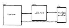 Four substantially different parties are involved. An administrator administers the process for the benefit ofpublisher100,distributor110, and a consumer or a user ofwireless terminal40.Publisher100, publishes the digital content or data file and issues the user an IC card in order to give access to the published content. Distributor,110, owns and operates a distribution terminal such as a wireless kiosk or any distribution point for transferring the digital content frompublisher100 to a user. A user may usewireless terminal40, for example, a wireless multimedia terminal, for access so as to receive digital content and utilize it. There might be other parties who fill in the relation or interaction among the above four parties, for example a network service provider betweenpublisher100 anddistributor110. However, these are irrelevant to the unique features of the invention.