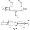 FIG. 10 illustrates another embodiment of the devices constructed according to the present invention having a constricting balloon with centering mechanism.