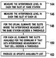 FIG. 20 uses UE-UE interference cells and base station interference measurements. A cell'sbase station301measures the interference levels in each timeslot,step186. UE-UE interfering cells are identified,step188. For the uplink, eliminate uplink timeslots, if that timeslot's interference exceeds a threshold,step190. For the downlink, a downlink timeslot is eliminated, if a UE-UE interfering cell uses it for the uplink,step192. Based on the eliminated timeslots, anavailability list88, such asFIG. 8, is produced.