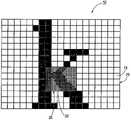 Theimaging system200 is used to display an image or series of images acrossseveral display units290, such that angles, length, and surface relationships in the displayed image correspond to those in the original image, although thedisplay units290 use different pixel sizes, such as that shown inFIG. 2.FIG. 2 shows animage10, in this example an image of the letter “k”, displayed across adisplay area25 havingpixels15 anddisplay area35 havingpixels20 where the size of thepixels15,20 in thedisplay areas25,35 are different. In this example,pixel15 has an area that is a factor of sixteen larger thanpixel20. Thedisplay area25 with thelarger pixel15 may be referred to as the “context area” and thedisplay area35 with thesmaller pixel20 may be referred to as the “focus area”. The focus area contains a portion of theentire image10 displayed at a higher resolution.