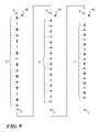 FIG. 8 is an enlarged view of the tape head module ofFIG. 6 showing an implementation wherein the module includes arrays of read transducer elements;
