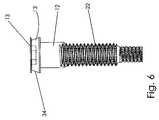 The assembly of the lockingplate16 and thebone plate14 automatically aligns thereceptacle16 and theaperture17 for connection by thecap screw20. The continuous side wall of the enlarged countersunk area and the periphery of the locking cap positively locate the components relative to each other. Thecap screw20 is tightened by a tool (not shown) that fits intoreceptacle29. Once the locking cap is secured in place, the heads of the locking screws are prevented from retraction. Because thecap screw20 is centrally located in the lockingcap16, any reverse rotation of the locking screws is opposed by a leveraging action between the locking cap and the cap screw. This action tends to jam the cap screw and locking cap tighter together.