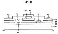 As shown inFIGS. 8 and 9, the IPS mode LCD device according to the second embodiment of the present invention mainly includes afirst substrate60, an second substrate (“74” inFIG. 10), which faces thefirst substrate60, and a liquid crystal material (“75” inFIG. 10) sealed between the twosubstrates60 and74.