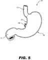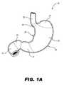 FIG. 1A is an exemplary diagram of a stomach (10). As shown inFIG. 1A, the shape of the stomach (10) as viewed from the side has two curves, the lesser curvature (25) and the greater curvature (26), which respectively follow the upper and lower surfaces of the stomach (10). The cardia or proximal stomach (20) is located in the upper left portion of the stomach (10) and serves as the junction between the esophagus (12) and the body (22) of the stomach (10). The fundus (21), which is also located in the upper portion of the stomach (10), produces acid and pepsin that help digest food. The lower portion of the stomach (10) is known as the distal stomach and includes the antrum (23) and pylorus (24). The antrum (23) is where food is mixed with gastric juice. The pylorus (24) acts as a valve to control emptying of the stomach contents into the small intestine (11).