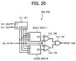 FIG. 20 shows the first and secondvoltage detections circuits82aand83awith exemplary substitutions of two D/A (digital-to-analog) converters DAC1 and DAC2 and two D/A (digital-to-analog) converters DAC11 and DAC12 for the constant voltage generator, the analog switches, and the resistors. In the firstvoltage detection circuits82aofFIG. 20, each of the D/A converters DAC1 and DAC2 outputs a voltage in response to the levels of signals output from the output terminals A-D of the decoder111. Likewise, in the firstvoltage detection circuits83aofFIG. 20, each of the D/A converters DAC11 and DAC12 outputs a voltage in response to the levels of signals output from the output terminals A-D of the decoder121.