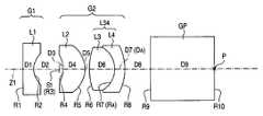 On the other hand, to increase the depth of field, many endoscope objective lenses have a large (i.e., dark) F number, in which case neither the spherical aberration nor the coma aberration is an important factor to determining image quality and the lateral color is a great factor to cause image quality deterioration. In particular, in recent years, with the density increase of solid-state imaging devices and the increase in the number of pixels, it has come to be necessary to correct for the lateral color sufficiently. To correct for the lateral color, it is preferable to dispose an optical member for the correction of lateral color at a position that is distant from the stop. In particular, on the image side of the stop, the optical member for the correction of lateral color becomes more effective as it is disposed closer to the image forming surface. However, in lens systems having a long back focal length, the optical member is not disposed close to the image forming surface and hence it is not easy to correct for the lateral color. Although the endoscope objective lens described in JP-A-2005-148508 has a sufficiently long back focal length, it still has room for improvement in terms of the correction of lateral color.