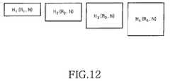 FIG. 12 is a diagram illustrating a process of generating a parity check matrix using a removing scheme according to an embodiment of the present invention. Referring toFIG. 12, Hi(Ri,N) represents a parity check matrix of a block LDPC code having a coding rate Riand a codeword length N. Assuming inFIG. 12 that each of parity check matrices has a full rank Mi, a coding rate of a code generated for each of the parity check matrices can be expressed as shown in Equation (7).
