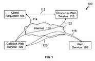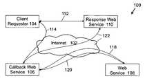 Thecallback web service106 is also coupled to theresponse web service110 to deliver the response (arrow122).