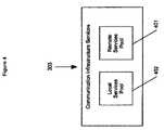 Layer3 (communications infrastructure services)303 of platform300 may be configured to interface with multiple communication infrastructures.Layer3303 of platform300 contains a local services pool and a remote services pool, as illustrated inFIG. 4. It is important to note that system100 (FIG. 1) contains a basic set of telephony features provided by a Common Converged Communication Base Services (CCCBS)layer304, as discussed below, which makes server-less communications straightforward as there is no reliance on the server/proxy for such features.