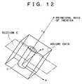 It is to be noted that, if voxels of volume data are produced in a higher density in a re-construction process, then naturally it is not necessary to interpolate pixels when sectional image data on the section B are produced, and the picture quality of sectional image data produced is not deteriorated. However, there is a subject to be solved that, if the density of voxels of volume data is further raised, then the amount of arithmetic operation in a reconfiguration process increases and the data size of the volume data increases.