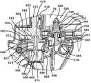 Movement of the cap120 (FIG. 1) in turn moves theslide116 thereby rotating abell crank117, which in turn rotates the shaft of thevalve114, attached thereto. In particular, projecting upward fromslide116 is anarcuate rib119. Asslide116 is moved rearward by the operator, therib119 engages the bell crank117 rotating the bell crank117 andthrottle valve114 counterclockwise thereby closing throttle valve1114 and de-energizing thebrush drive turbine98. Upon return of theslide116 to its original position (as illustrated inFIG. 5), aspring123, secured between the bell crank117 and theslide116, causes the bell crank117 to rotate clockwise, thereby rotatingthrottle valve114 to the fully opened position. Generally, as theslide116 moves from one position to the other, a cantilevered tab releasingly engages concavities in the surface of the table, which corresponds to the opened and closed positions ofvalve114. A similar mechanism is disclosed in U.S. Pat. No. 5,860,188, the disclosure of which is incorporated by reference.