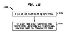 Instep11904, the biased input signal is frequency down-converted with a first universal frequency down-conversion module to a down-converted signal.