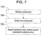 Referring toFIG. 7, a flow diagram illustrates a method for an AP Router module.Block710 provides that the module receives routing data.Block720 provides that the module update the routing data by learning a source address and a transmitting AP's address. The routing data can be in an incoming data packet with up to four addresses therein.Block730 provides for repeating the update for each address packet received requiring routing to a station outside of the AP's local cell, which can include a four-address packet.
