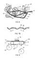 As shown inFIG. 13A, this particular example has been formed by needling staple fibers into asubstrate14, as described above with respect toFIG. 1. In the loop region shown,discrete loop structures48 extend from the fastening side of the material, while a thin layer of base fibers extends across the loop region on an opposite side. These figures are not drawn to scale. In the alternative construction shown inFIG. 13B, the engageable loop fibers are exposed at a surface of a thin layer of bonded fibers on the fastening side, with the opposite side of the material remaining free of such fibers.