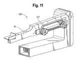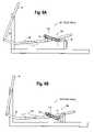 A further problem can occur when thestride adjustment mechanism166 is in motion where a vertical force acts on thepedal lever50. The magnitude of this force changes cyclically during the motion of themechanism10. At long strides and relatively high pedal speeds, this force can be sufficient to cause thepedal lever50 to momentarily lift off itsrearward support roller70. This potential problem can be addressed in a number of ways including: install a restrained rearward support such as a linear bearing and shaft system, linearguides rail system220, as shown inFIG. 11, roller-trammel system184, as shown inFIG. 4; limit the maximum LC-CE phase angle188 to less than 180 degrees; restrict stride range to 95% of mechanical maximum; and reduce the mass of the moving components in the stride adjustment mechanism and the pedal levers.