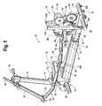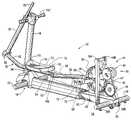 BACKGROUND OF THE INVENTIONThere are a number of different types of exercise apparatus that exercise a user's lower body by providing a circuitous stepping motion. These elliptical stepping apparatus provide advantages over other types of exercise apparatuses. For example, the elliptical stepping motion generally reduces shock on the user's knees as can occur when a treadmill is used. In addition, elliptical stepping apparatuses exercise the user's lower body to a greater extent than, for example, cycling-type exercise apparatuses. Examples of elliptical stepping apparatuses are shown in U.S. Pat. Nos. 3,316,898; 5,242,343; 5,383,829; 5,499,956; 5,529,555, 5,685,804; 5,743,834, 5,759,136; 5,762,588; 5,779,599; 5,577,985, 5,792,026; 5,895,339, 5,899,833, 6,027,431, 6,099,439, 6,146,313, and German Patent No. DE 2 919 494.
