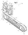 FIGS. 4 and 5 are views of the preferred embodiment of dynamic link mechanism for use in adjusting stride length in an elliptical stepping apparatus of the type shown inFIG. 1;