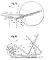 FIG. 14 is a schematic view of afirst actuator246 that can be mounted for example on theextension arm224 or thecrank68′ of thepedal actuation assembly222 ofFIG. 12. In thisactuator246, a hydraulic fluid indicated at248 contained in acylinder250 flows through aline252 to control the position of apiston254 in thepiston cylinder256 which in turn is connected to theextension arm224 or thecrank68′ by apiston rod256. Flow of the fluid248 is regulated by avalve258. In the preferred embodiment of thisactuator246, the valve is opened when theextension arm224 or thecrank68′ is under tension and closed when they are under compression. This will serve to lengthen theextension arm224 or thecrank68′ thereby increasing stride length. Reducing the length of theextension arm224 or thecrank68′ is accomplished by reversing the process. It should be noted that variations on thisactuator246 can be used such as replacing thehydraulic fluid248 with a pheonetic magnetic fluid where the fluid is controlled by a flow channel in thepiston254. One advantage of thisactuator246 is that it does not require a source of outside energy to move thepiston254 but only enough energy to operate thevalve258. This type of actuator can be especially useful in self powered apparatus where power is only obtained from thealternator42 when a user is moving thepedals12.