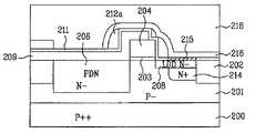 Then after depositing a refractory metal layer on the entire surface of thesemiconductor substrate200, a beat treatment process can be performed to form ametal silicide layer215 on the surface of the high-density N+type diffusion area214.