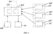 Thecontroller150 generally includes one ormore processors155 in communication with amemory160 having a computer-readable storage medium. The storage medium is operable to receive and store a plurality of programmable instructions for execution by theprocessor155. An embodiment of thecontroller150 is also connected in communication with aninput device165 and anoutput device170. Theinput device165 can include one or combination of a keyboard, touch-screen, remote computer workstation, mouse, etc. or the like operable to receive data from an operator. Theoutput device170 can include a display comprising one or combination of a monitor, a large departmental display area or map at control station, an alarm, light emitting diodes (LEDs), printer, pager, palm pilot, cell phone, etc. operable to visually or audibly show an output of thecontroller150 for illustration to an operator. Thecontroller150 can also be connected in communication with a remote computer station or back office (not shown).