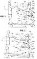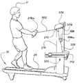 Additional displays can include a mile display to display the simulated distance traveled by user U during the exercise regimen, a calorie display to display the current rate of user U calorie expenditure or the total calories expended by user U during the exercise regimen. Further,hand controller16 andconsole display218 can include an input key pad with which user U can communicate with a microprocessor that operatestreadmill10 so as to operatetreadmill10 as well as set the parameters for exercise regimens. Also included onhand controller16 orconsole display218 is or can be on-off buttons, emergency stop button, increase buttons to increase a parameter, decrease buttons to decrease parameters, and other functional input devices. All of these are known in the treadmill art. Further, hand grips216 also can comprise input means (not shown) for reading user's U heart rate, as is known in the art.