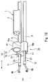 The supportingadaptor101 includes a supportingmember102. The supportingmember102 is formed with two throughholes103 so as to extend in parallel with each other at a predetermined distance, and theexternal channels8,9 are mounted so as to communicate the lumens thereof with the respective throughholes103. In addition, provided between the throughholes103 is a mountingmechanism104. As shown inFIG. 18, the mountingmechanism104 includes aslide hole105 penetrating from anupper surface102ato alower surface102bof the supportingmember102, and alock member106 as a connecting member which is slidable along theslide hole105. Theslide hole105 is a shouldered square hole having a wider width at positions near theupper surface102aand near thelower surface102brespectively. Thelock member106 is provided with engagingplates108 having a wider width at both ends of asquare rod107. The distance between the engagingplates108 is longer than a distance between the upper andlower surfaces102a,102bof the supportingmember102, and in a state in which the lowerengaging plate108 comes into abutment with a lower shoulderedportion105bof theslide hole105, the upper engagingplate108 projects from theupper surface102a. Also, in a state in which the upper engagingplate108 comes into abutment with an upper shoulderedportion105aof theslide hole105, the lowerengaging plate108 projects from thelower surface102b.