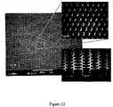 FIG. 22 shows SEM photographs of a photoresist grating structure in plan view (center and upper right) and cross-section (lower right);