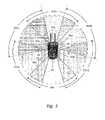 When apedestrian90 departs the zone viewedimage sensor571 and remains only in the zone viewed byadjacent image sensor571, only therespective image processor573 continuous to track and to re-computes the distance and azimuth topedestrian90.