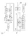 Encoder101A generates an a priori known preamble digital sequence of information. For the QAM embodiment described herein,encoder101A generates two similar preamble data sequences (“sequences”)341 and342, which are, respectively, sine and cosine versions of the preamble sequence of information, one phase shifted ninety degrees with respect to the other.Sequences341 and342 are provided to respective Nyquist filters302 as inputs. Nyquist filters302 filter possibly excessive digital frequencies below the Nyquist rate forsequences341 and342 and then provide filteredsequences341A and342A totransmission conduit313.