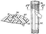 As indicated inFIGS. 35,36 and37, the skived side edges134,136 of the panel S will be adhered together by asuitable adhesive90 so as to define aseam91 extending through the panel. Because of the skived side edges134,136, theseam91 extends through the panel at an angle relative to the depth of the panel S so as to increase the length of such seam as compared to a seam extending parallel to the depth of the panel. Increased length of the seam affords a stronger bond. As one of skill in the art would appreciate and as discussed in my earlier disclosures, there are different ways of attaching the panel to the underlisting sleeve U. Asuitable adhesive90 used to join the EVA layers and to wrap the polyurethane/EVA panel to the underlisting is preferably a combination of methyl-ethyl-kentone (C6H5CH3) and T1008 polyurethane. As those of skill in the art will appreciate, these compounds can be combined in various ratios. However, one suitable ratio of the combination is 8:1. As one of skill in the art would appreciate and as stated in the disclosure of my U.S. Pat. No. 6,627,027, one can purchase EVA having anadhesive coating30 covered by a protective paper from the Ho Ya Electric Bond Factory, Xin Xing Ind. Area. Xin Feng W. Rd., Shi Jie Town Dong Guan City, Guan Dong, Province, China. Still other possibilities are contemplated for securing the panel S to the underlisting U, including, but not limited to, the use of a tape, rather than liquid, form ofadhesive90.