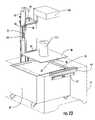 A second Omron liquid level sensor is shown at87 (FIGS. 7 and 9) and is rigidly fixed to the elevator frame in the rear of the chamber housing for determining the level of resin in the vat and whether additional resin should be added to the vat.Sensor87 determines whether resin needs to be added or removed to maintain a build plane during a build. During the build, the sensor (FIG. 30) determines the level of resin in the vat so that resin can be added or removed to maintain the same level at all times and thus at the same distance from the blade as that obtained during mapping. The Omron sensor is a laser diode sensor operating closed loop in that the sensor operates between successive scans by the laser of the working surface and shuts off when the appropriate resin level is reached.