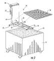Therecoater blade42 can be attached to and removed from thecarrier44 entirely by hand. The stereolithography system's computer controls alignment of the recoater blade and substantially reduces the tedious procedures associated with prior apparatus. Turning now toFIGS. 5 and 6 and a discussion of the features of the recoater blade and carrier that provide for ease of installation and removal of the blade, knurled handles55, only one of which is shown on the recoater blade ofFIG. 6 are used for installing the recoater blade and removing the recoater blade from the carrier by hand. It should be recognized that there is a corresponding handle on the end of the blade not illustrated inFIG. 6, as can be seen inFIGS. 4 and 17 through19. Areceiver64 on the recoater blade (FIG. 5) receives acorresponding alignment pin66 on the recoater carrier.Pin66 is illustrated round in cross-section and this shape can be varied. It may be desirable to provide a second alignment pin of a different shape on the opposite end of the recoater carrier and a corresponding receiver on the blade. These alignment pins assist the operator to make sure the blade is correctly oriented on the carrier.Magnets70 and71 or other attachment means, one at each end of the blade carrier and one at each end of the recoater blade, respectively, secure the recoater blade on the carrier. Other attachment means can be used, although these may require tools for installation or removal of the blade.Contacts72 can be provided to activate aproximity switch75 for indicating that the blade is properly secured in place on the carrier. It is useful to provide three such contacts, one on the end of the carrier as shown, and two on the opposite end so that a three-point contact is required to activate the proximity switch to signal correct position for the recoater blade on the carrier.