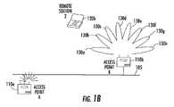 Referring initially toFIG. 1A, a wireless local area network (WLAN)100 having adistribution system105 will initially be discussed. Access points110a,110band10care connected to thedistribution system105 via wired connections, such as wired data network connections. Each of theaccess points110a,110band110chas arespective zone115a,115b,115cin which it is capable of communicating via radio frequency (RF) signals with theremote stations120a,120b,120c. Theremote stations120a,120b,120care supported with wireless local area network hardware and software to access thedistribution system105. In the following description, when a general reference is made to the access points, the remote stations and the zones, therespective reference numerals110,120 and115 may be used.