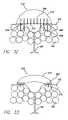 FIG. 32 is a schematic cross section view through an embodiment of an injection member having some needles deployed through the skin of a patient.