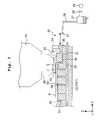 The liquid50, which outflows from the gap between the substrate P and theauxiliary plate59, is sucked to the side of theflow passage22 together with the surrounding air through the liquid recovery holes46 provided on the back surface side of the substrate P. The liquid50 is recovered into thefirst tank27 through thetube passage26.