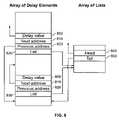 As shown inFIG. 8, the elements of the list include: (a) thedelay value800 representing the delay suffered by the packet; (b) thenext address value810 representing the address of the next element in the list; (c) theprevious address value820 representing the address of the previous element in the list; (d) thelist value830 representing the address of the list of which this element is a member. All elements are stored in an array, allocated in order of address. When an element is to be discarded, the least recently allocated element is selected. When an element is allocated, the lists are searched in turn to find the correct list. The element's next and previous pointers, those of its neighbors and, if necessary, the head and tail pointers of the list are modified to insert the element into its correct place in the list. In addition, the list element is updated to point to the list that holds the element. When an element is discarded, its list pointer is used to find the list that holds it, the list is then searched to find the element and the element is removed from the list.